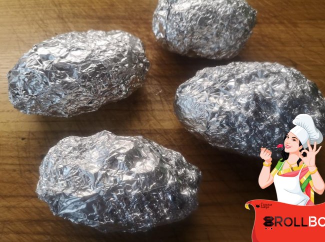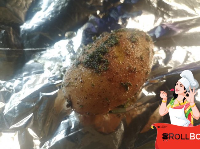 Картофель промыла. Сделала на поверхности проколы ножом... обваляла в смеси растительного масла со специями и розмарином.