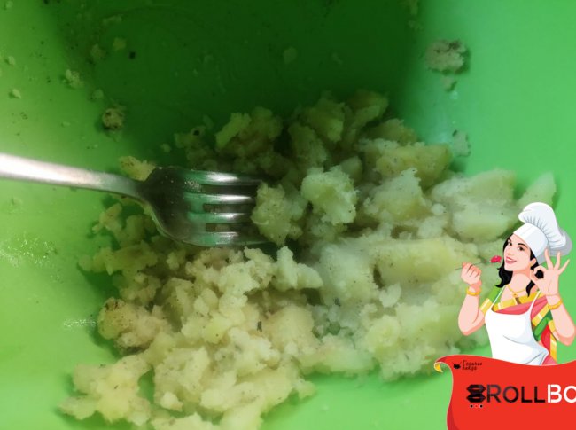 Готовый картофель надо очистить от кожуры, размять вилкой... Добавить немного перца и если надо, соли... Полить ложкой растительного масла, перемешать.