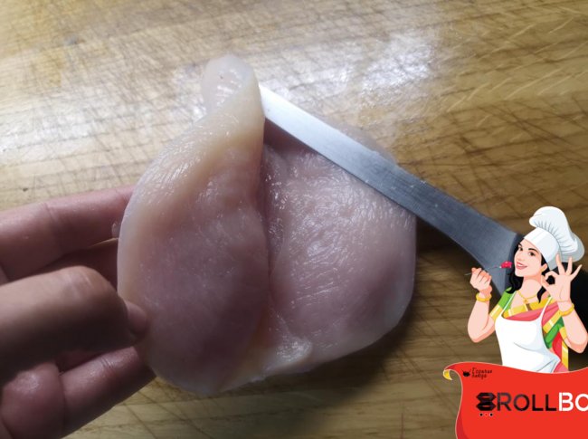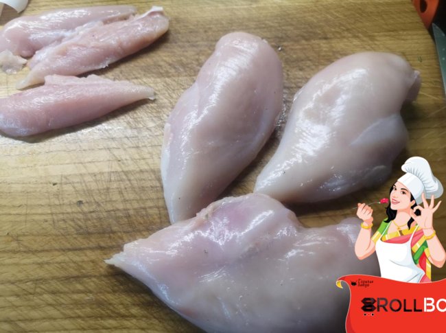 У меня было три штучки куриного филе. Я отрезала малое филе (его можно использовать в другом блюде, но я его так же приготовила).