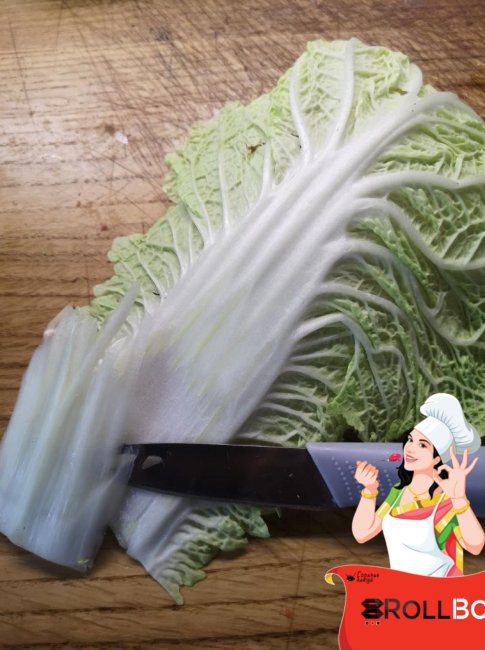 Срезала лишнюю жесткую часть. Нам надо будет свернуть листок в рулет.