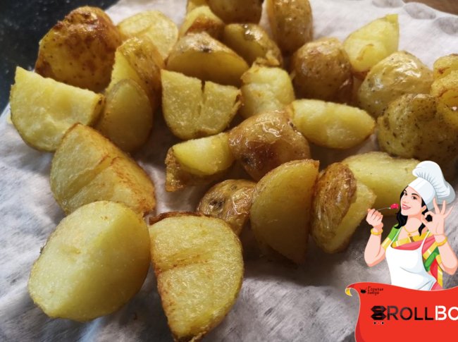 Картофель (у меня был молодой), разрезала на четыре части... Отварила на пару в мультиварке до готовности. Нет мультиварки, просто отварите в воде. Затем откиньте на сито, чтобы слилась лишняя влага.
