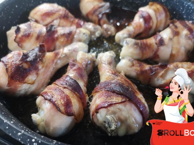 Ингредиенты куриные голени сырокопченый бекон Приготовление Все очень просто! Куриные голени заворачиваем в слайс бекона. У меня ушел один слайс на голень... Можно и больше навертеть, но мне кажется, это лишнее. И да, голени солить не надо! Запекаем в разогретой до 180С духовке минут 50. Приятного