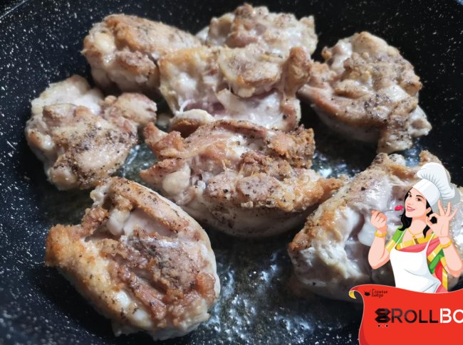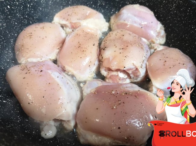 На разогретом растительном масле обжарила куриное филе, которое предварительно посолила и поперчила, по 5 минут с каждой стороны... на среднем огне.