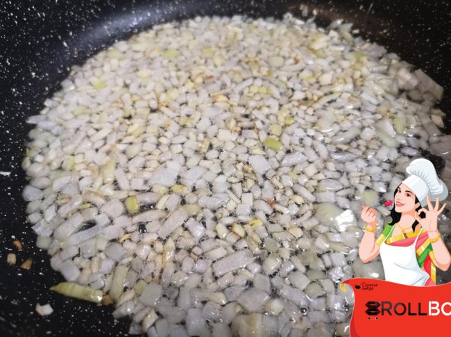 Потом в этой же сковороде на растительном масле на небольшом огне обжарила мелко нарезанный репчатый лук и чеснок до прозрачности.