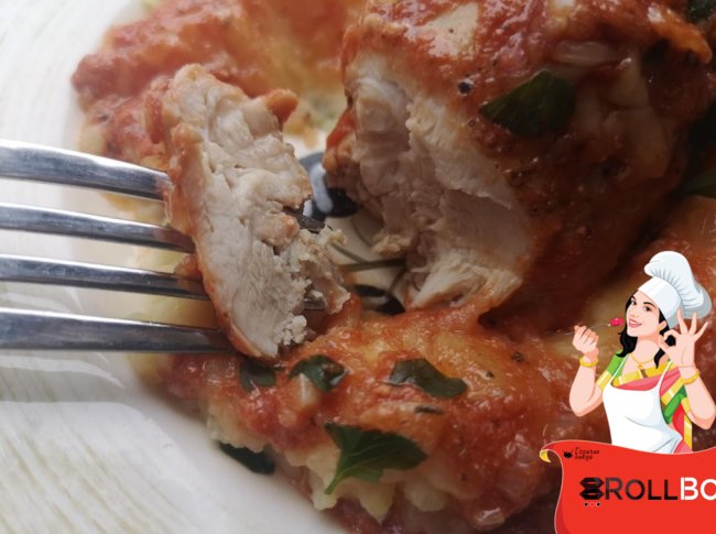 Ингредиенты филе куриного бедра - 850 гр. (8 шт.) репчатый лук - 1 шт. чеснок - 3 зубчика протертые томаты - 500 гр сливки 20% - 100 мл тертый сыр - 70-100 гр. соль, молотый черный перец по вкусу сушеный тимьян - 0,5 ч.ложки сушеный базилик - 0,5 ч.ложки свежий розмарин - веточка сахарный песок -