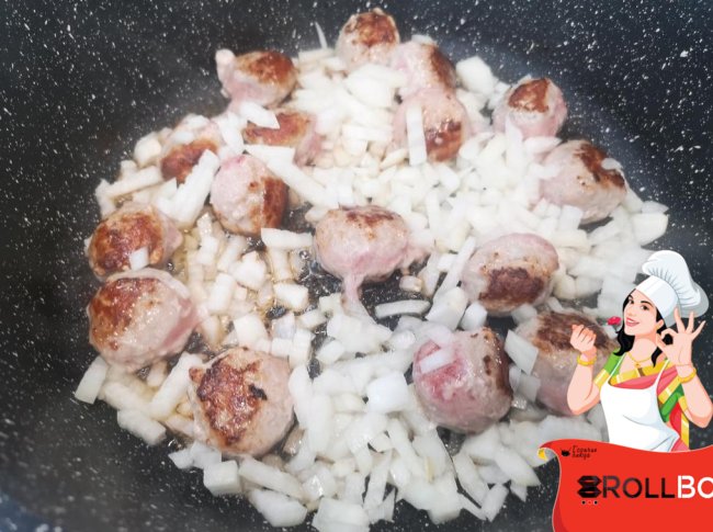 Затем добавила мелко нарезанный репчатый лук... Обжарила пару минут.