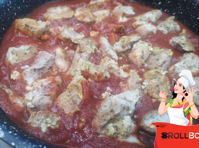 Ингредиенты свиная вырезка - 450 гр. яйцо - 1 шт. соль, молотый черный перец по вкусу итальянские травы - 1 ч.ложка тертые томаты - 500 гр. сахарный песок - 0,5 ч.ложка тертый сыр - 4 ст.ложки зелень петрушки Приготовление Свиную вырезку очистила от пленок и нарезала средним кубиком. В миске