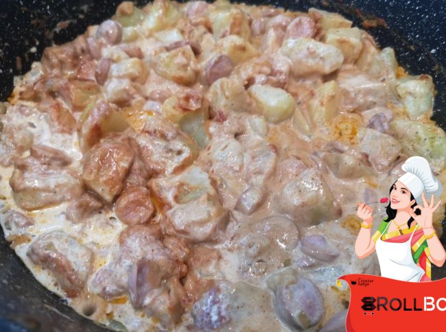 Добавить пару ложек столовых томатной пасты, одну чайную красной сладкой паприки, щепотку муската, и по полстакана сливок и молока (влила чуть больше сливок 20 . Соль и перец по вкусу, конечно, туда же.