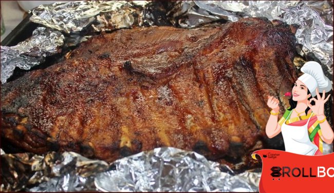 Затем противень застилаем фольгой вдоль и поперек, чтобы концы фольги свисали с четырех сторон, выкладываем ребрышки ,кисточкой смазываем ребрышки остатками маринада, в котором они мариновались ,хорошо заворачиваем ребрышки в фольгу и отправляем противень в разогретую до 180 градусов духовку на 1 час. Затем фольгу открываем ,смазываем ребрышки оставшимся в мисочке маринадом и отправляем ребрышки опять в духовку минут на 15 - 20 прибавив температуру до 200 градусов. Здесь уже нужно обязательно следить, т.к. мед в духовке очень быстро начинает подгорать.
