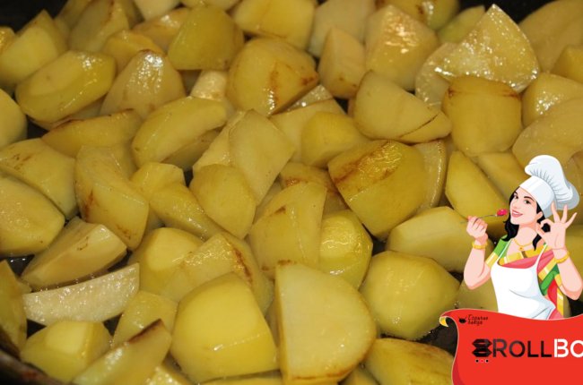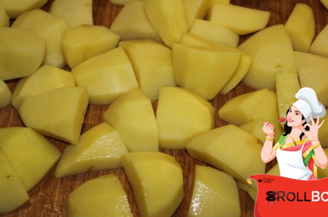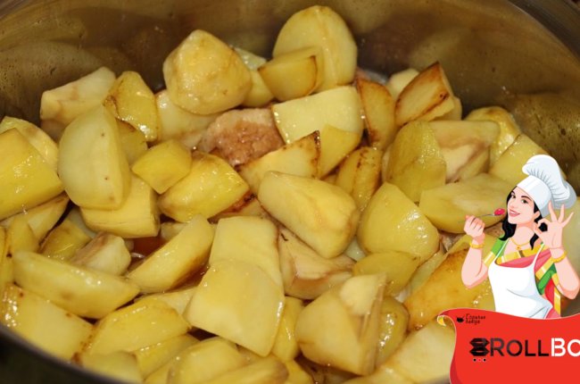 Также обжариваем слегка картошку, чтобы она немного прихватилась со всех сторон.