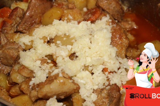 Добавляем измельчённый чеснок. Перемешиваем, доводим до кипения.