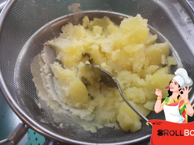 Сначала сделаем картофельный крем. Для этого надо почистить картофель, порезать кубиками... Отварить в подсоленной воде до готовности... минут 20. Затем откидываем картошку на сито... Протираем ее...