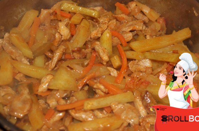 Ингредиенты Говядина - 800г ( у меня была постная свинина) Картофель - 6-8 шт. Морковь крупная - 1 шт. Лук - 3 шт. Солёные огурцы - 5 шт. Помидоры - 3 шт. Томатная паста - 1 ст.л. Соль, перец - по вкусу Чеснок - 6 зубчиков Лавровый лист - 1 шт. Растительное масло для жарки Это очень вкусно!