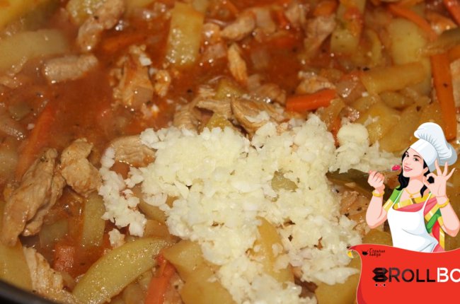 За 5 минут до готовности добавляем рубленный чеснок, перемешиваем и доводим до готовности.