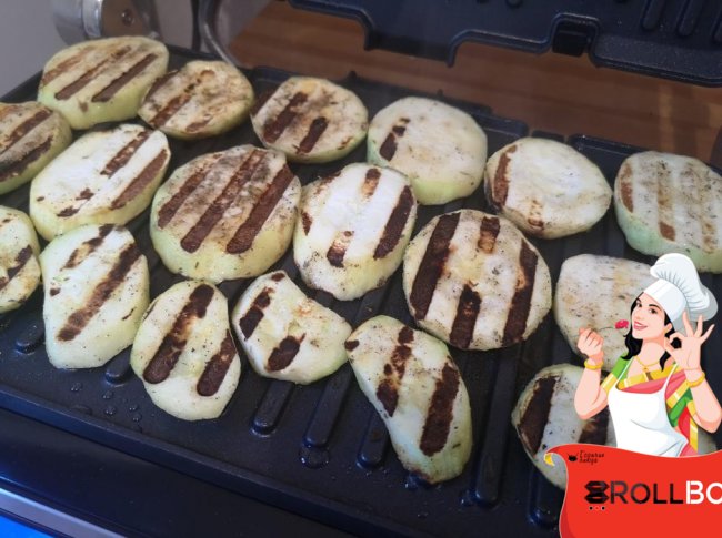 Разогрела гриль (верхнюю и нижнюю пластину до 230 градусов). Я решила немного смазать пластины растительным маслом (хотя масло и есть в овощах и курице).