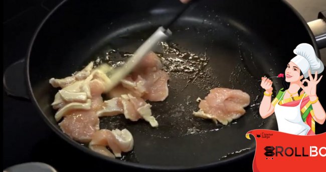 На кунжутном масле отдельно обжарьте курицу. Небольшими частями, чтобы мясо жарилось, а не тушилось.