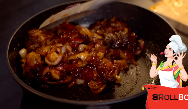 Ингредиенты 1 ст.л. кетчупа 1 ст.л. бальзамического соуса Имбирь 1 ч.л. рыбного соуса Куриная грудка Для кляра: Яйцо — 1 шт. Мука — 6 ст.л. Кукурузный крахмал — 3 ст.л. Растительное масло Для соуса: Красный лук — 1 шт. Черри — 3 шт. Кетчуп — 4 ст.л. Кунжутное масло — 1 ст.л. Бальзамический соус —