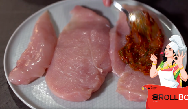Если грудки большие - разрежьте их вдоль, чтобы они были не слишком толстые, и хорошо прожарились внутри. Замаринуйте куриные грудки.