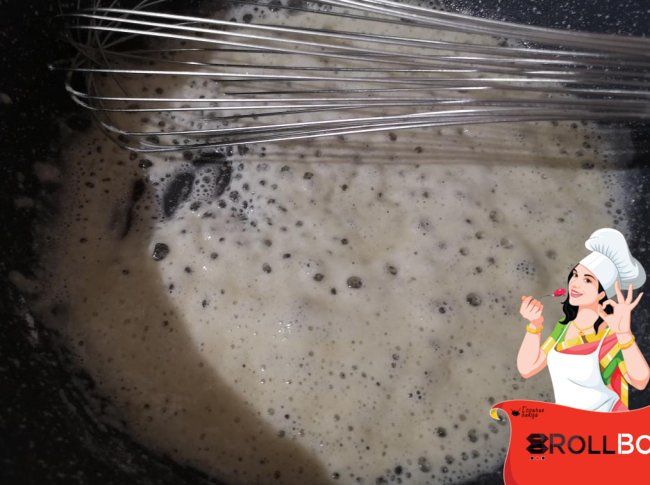 Для соуса растапливаем в сковороде сливочное масло, добавляем туда муку... Постоянно перемешиваем, чтобы не было комочков...