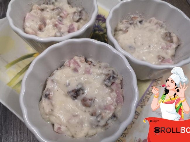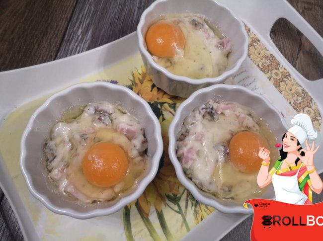 Яйца кокот с ветчиной и шампиньонами - «Мясные блюда»