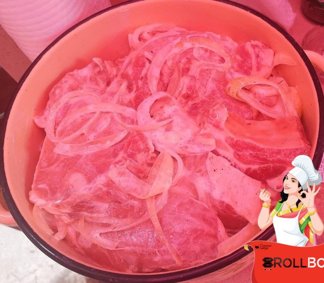 Ингредиенты свинина - 2 кг лук - 2-3 шт. соль, молотый черный перец по вкусу молотая зира молотый кориандр кефир - 1 литр Приготовление Нарезать репчатый лук кольцами, добавить к нему соль... щепотки три-четыре и начинаем жамкать, чтобы лук дал сок. В этот раз мы взяла корейку на кости... но еще