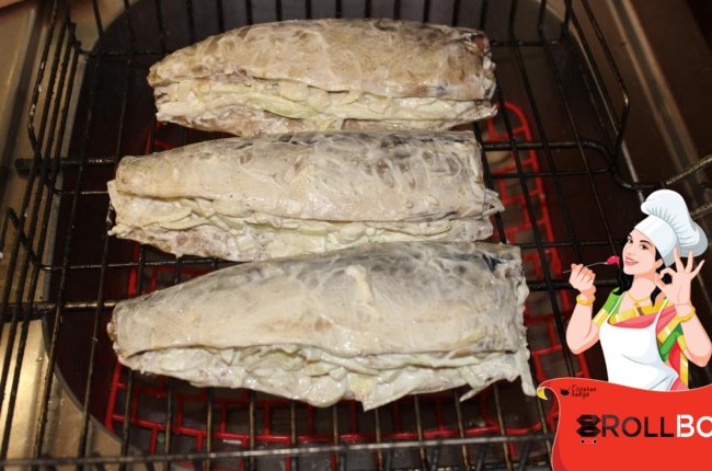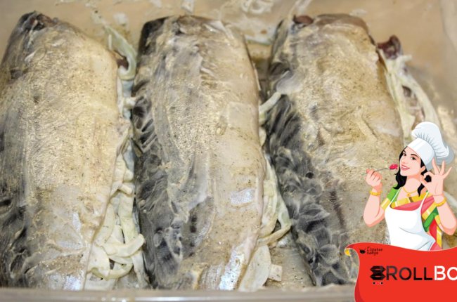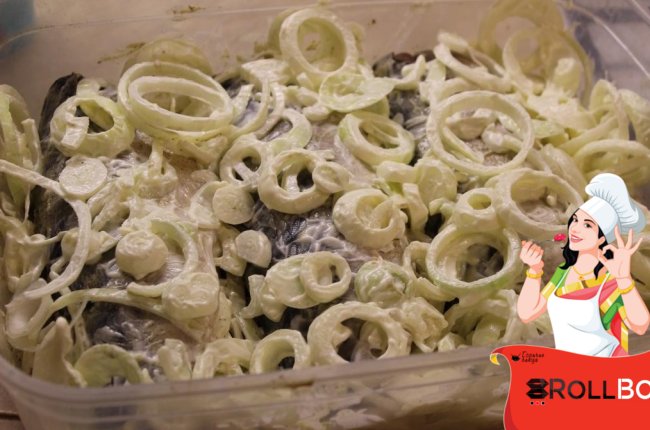 Затем лук сверху рыбы убираем. Лук в брюшках обязательно остаётся!