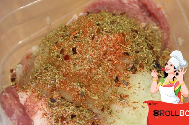 Лук натереть на тёрке (я измельчила в блендере в кашу). Замариновать мясо в луке и любимых специях.