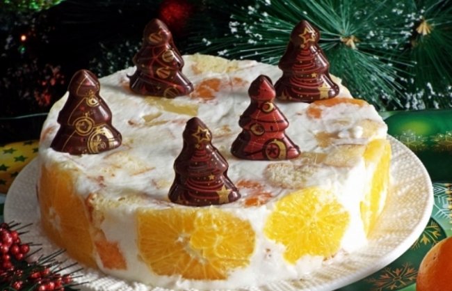 Если хочется порадовать гостей и домочадцев вкусным десертом, то можно приготовить торт на Новый год 2021 с фруктами. Рецепт с фото очень простой и доступный, а ингредиенты можно варьировать по своему усмотрению.