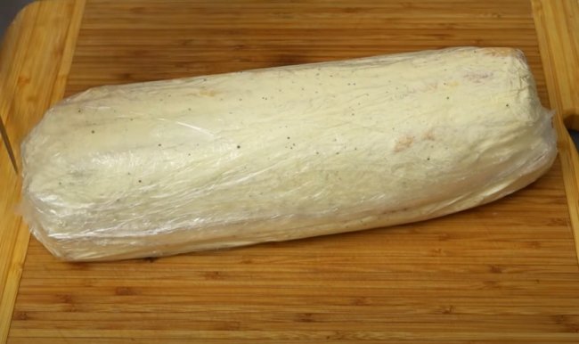 - Завернуть заготовку в рулет и отправить в холодильник. Оставить примерно на 12 часов.