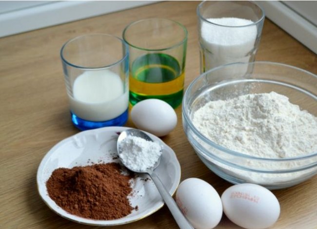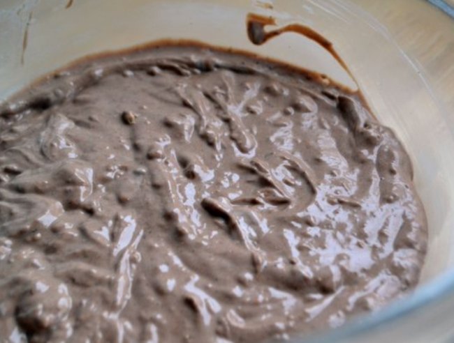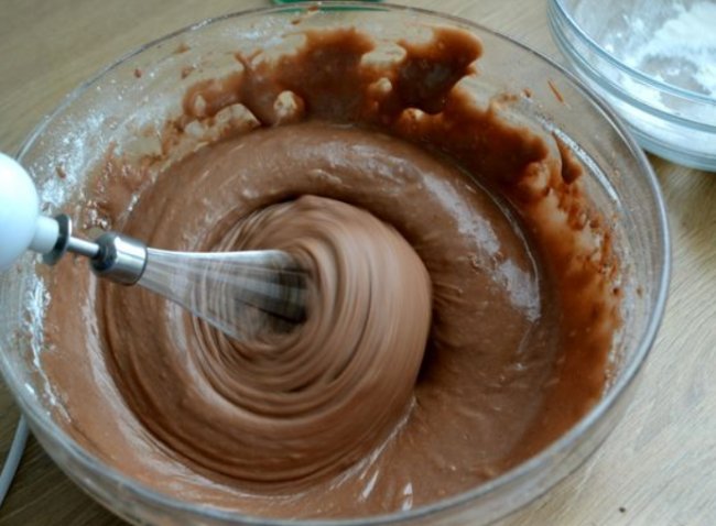 - Ввести в заготовку молоко с растительным маслом, а также какао. Довести до однородности.