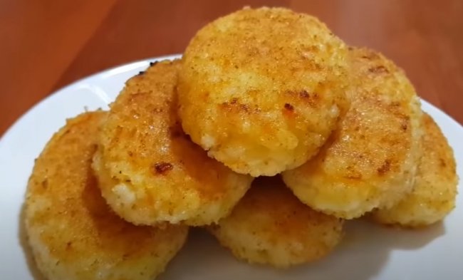 - Из получившегося рисового фарша лепим котлеты, панируем в сухарях и обжариваем до золотистой корочки с двух сторон.