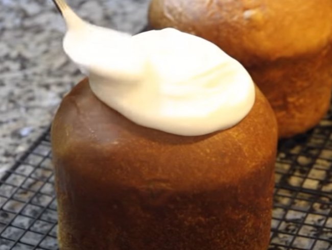 - В процессе взбивания по желанию можно добавить любой ароматизатор и краситель. Готовую глазурь наносим только на полностью остывшие куличи.