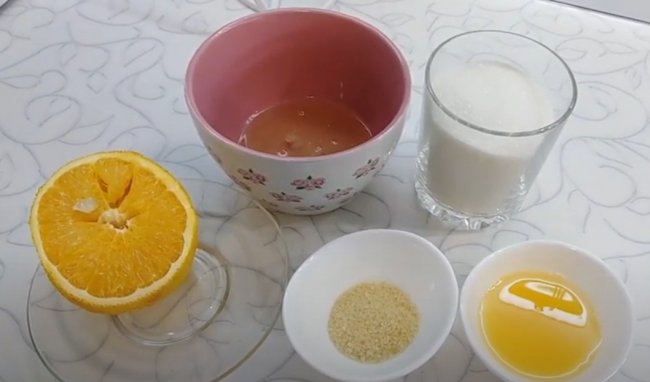 - Гранулы желатина высыпаем в мисочку, вливаем к ним апельсиновый сок, размешиваем и пока отставляем в сторону.