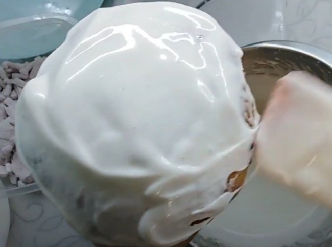 - Не ждем, пока глазурь остынет, а сразу наносим ее на пасхальные куличи.
