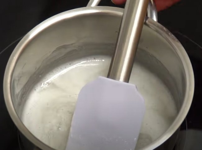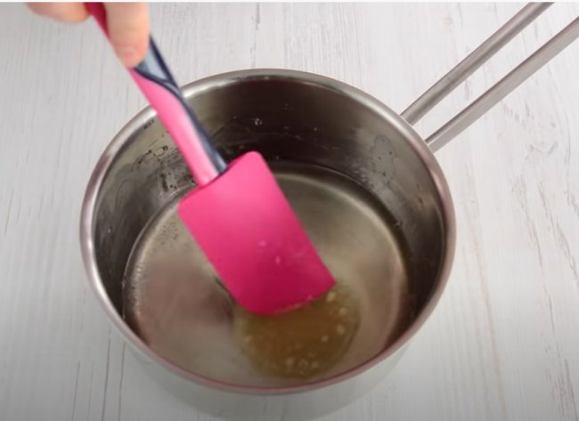 - Содержимое ковшика перемешиваем в однородную смесь и ставим на огонь, нагреваем до очень горячего состояния, но не кипятим. Это важно.