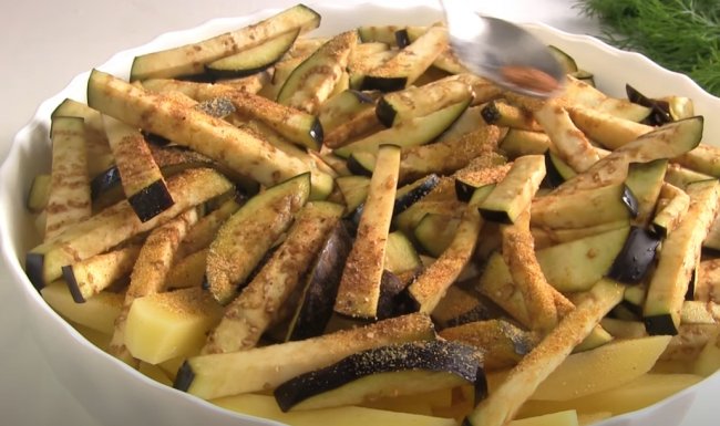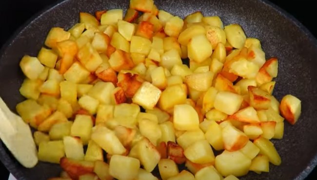 - В это время брусочками режем картофель и жарим на сливочном масле 15-20 минут.