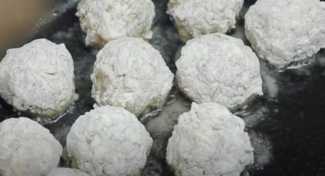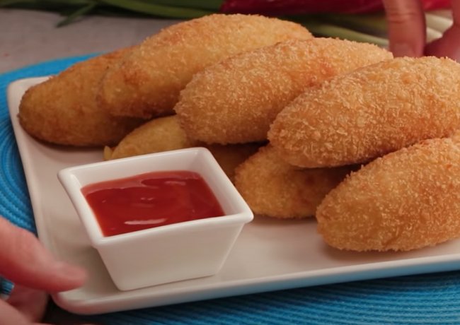 - Получившиеся картофельные зразы с начинкой жарим во фритюре до золотистости.