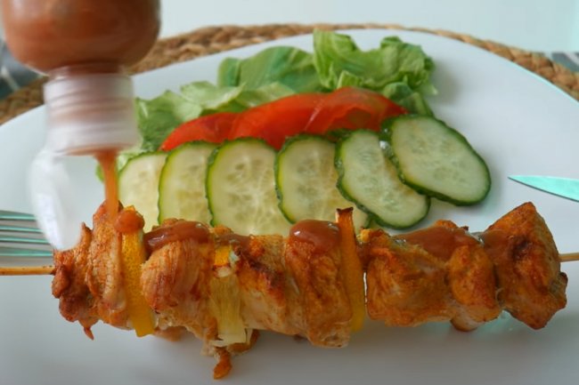 Из индейки можно приготовить еще одно вкусное блюдо для диетического ужина – аппетитные шашлычки. Такое угощение можно подать даже на праздничный стол.