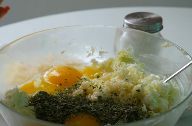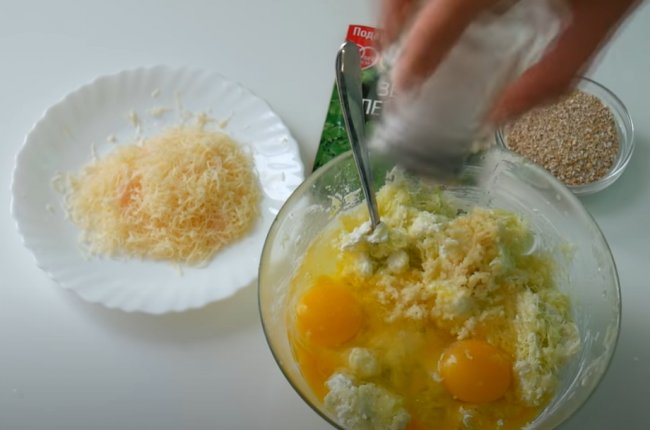 - К тертому овощу добавляем мягкий творог, яйца и тщательно все перемешиваем.