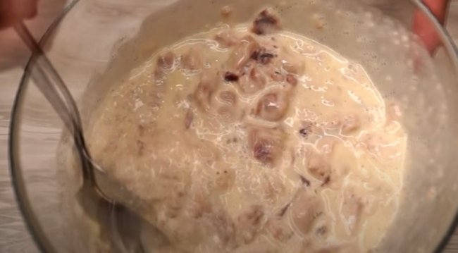 Если тесто для запеканки получилось жидким, добавляем пару ложек отрубей и перемешиваем.