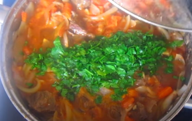 - Готовое блюдо посыпаем измельченным зеленым луком и петрушкой, подаем к столу.