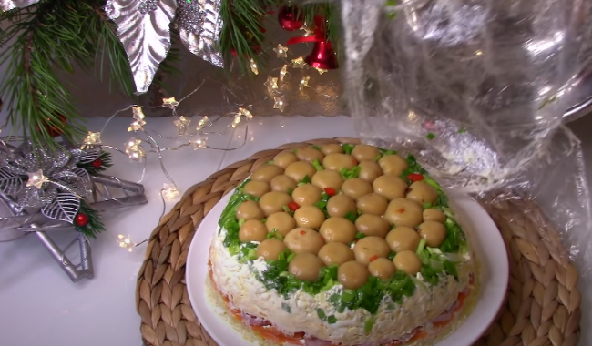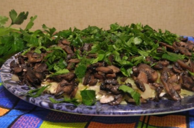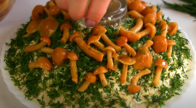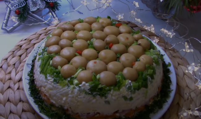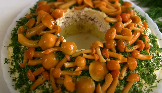 Слоеный салат на Новый 2022 год «Грибная поляна»