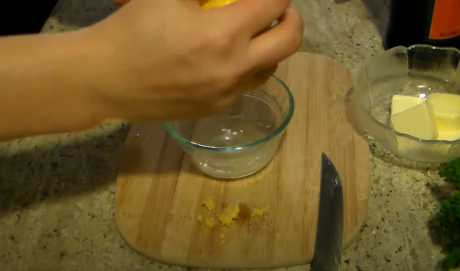- С лимона натираем цедру, разрезаем его пополам, выдавливаем в цедру сок.