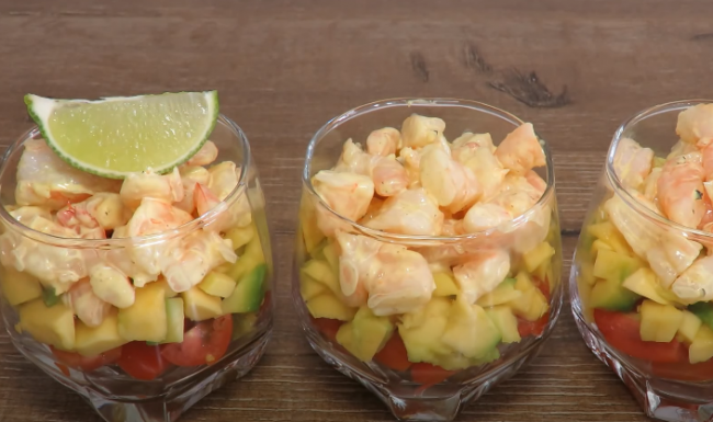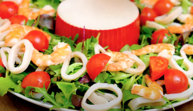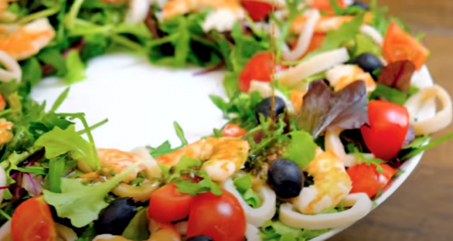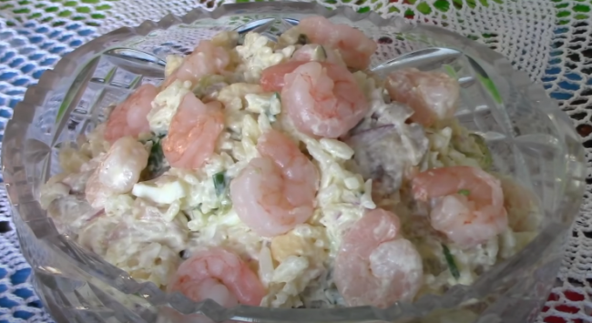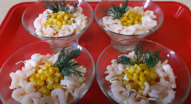 На праздничный стол на Новый год 2022 приготовим очень красивый эффектный салат с креветками, рецепты которого можно найти в различных вариантах.
