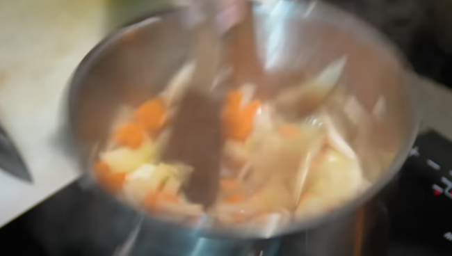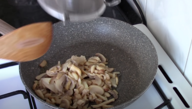 Если грибы свежие, лука нужно две головки – одну из них добавляем к грибам при обжаривании.