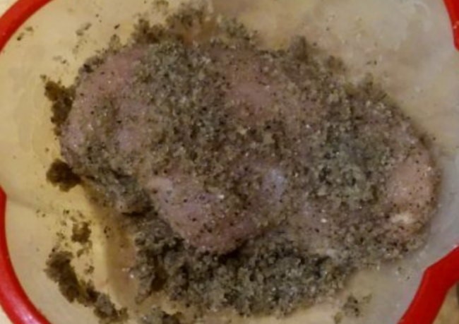- Теперь каждый кусок хорошенько обваливаем в специях и соли слегка даже надавливая. Чтоб все все было покрыто этой смесью.