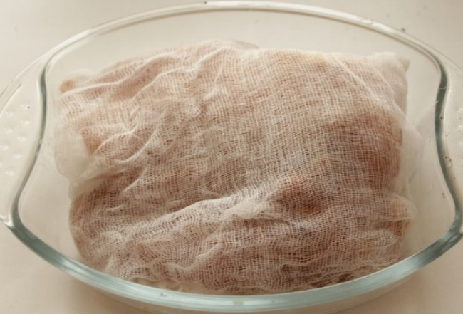 - Завернула курицу в марлю и положила в холодильник. Филе нельзя класть в миску, потому что нужен доступ воздуха.