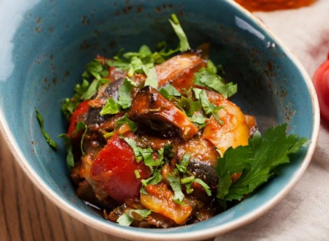 - Тушим рагу на среднем огне под крышкой не более 15 минут, чтобы овощи не потеряли форму и не превратились в икру. Перед подачей блюдо должно хорошо настояться, не меньше часа.