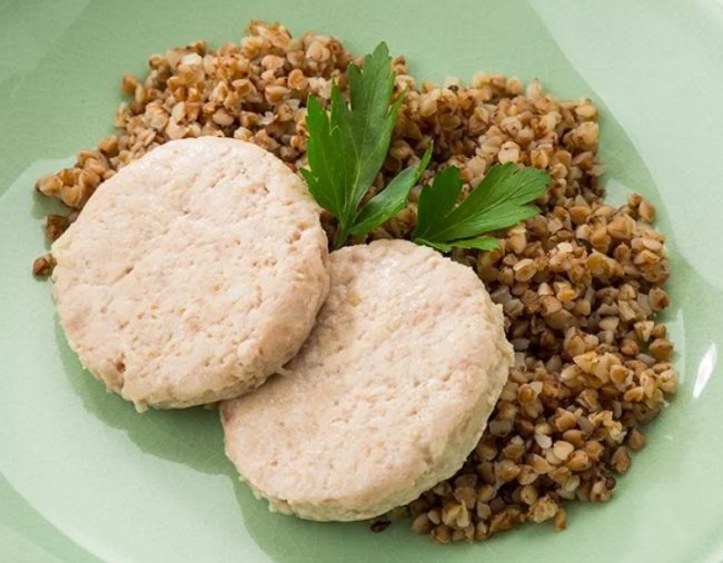 - Ужин: гречка и куриные котлеты, приготовленные на пару.