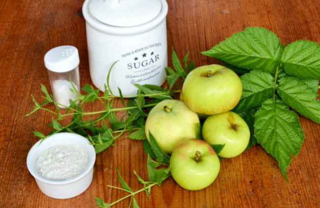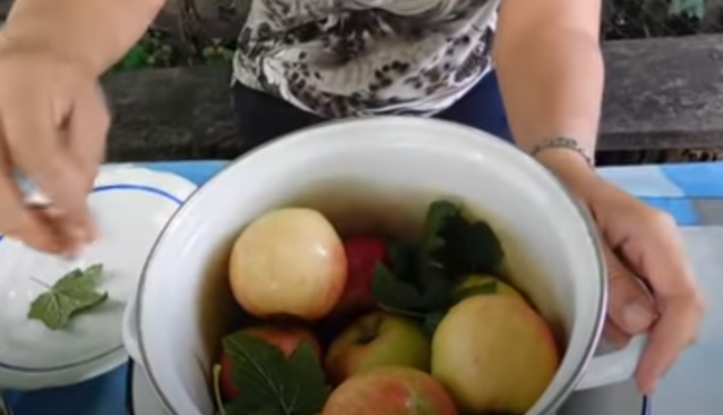 - Яблочки перебираем, хорошо промываем, как и листики смородины.